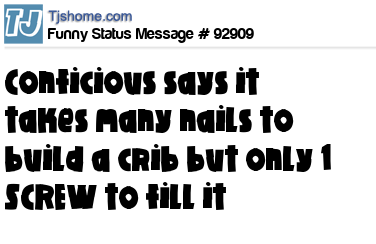 - # 51886 It takes many nails to build crib, but only one screw to fill it.