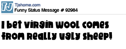 - # 178968 Me: I need to ask you a serious question. GF: OK! First, let me get my mother, sister, BFF and college roommate on speakerphone!! Me: OK, why does a wool sweater shrink when you wash it but sheep don't shrink when it rains??