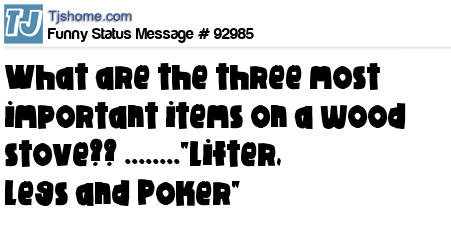 X is What are the three most important items on a wood stove?? ........"Lifter, Legs and Poker"
