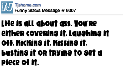 - # 18292 life is all about ass. Your'e either covering it, laughing it off, kicking it, kissing it, busting it, trying to get a piece of it, behaving like one, or you live with one!