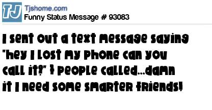 - # 107356 Today I sent out a text saying, “Hey, I lost my phone, will you call it?” 12 people called me…I need damn smarter friends.