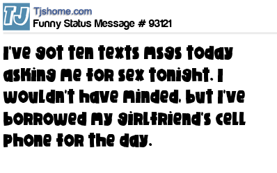 X is I've got ten texts msgs today asking me for sex tonight. I wouldn't have minded, but I've borrowed my girlfriend's cell phone for the day.