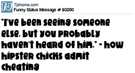 X says "I've been seeing someone else, but you probably haven't heard of him." - how hipster chicks admit cheating