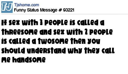 - # 72483 If sex between 3 people is called a Threesome and sex between 2 people is called a Twosome... Why is Handsome still a compliment? ;)