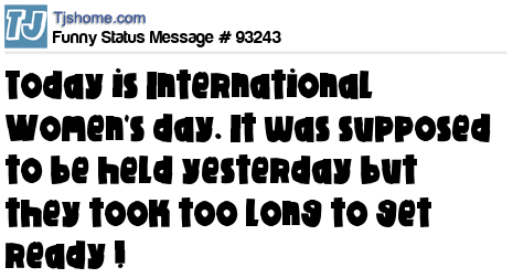 X says Today is International Women's day. It was supposed to be held yesterday but they took too long to get ready !