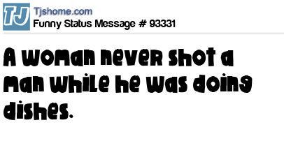 - # 87746 Fact: No woman has ever shot a man while he is doing the dishes!