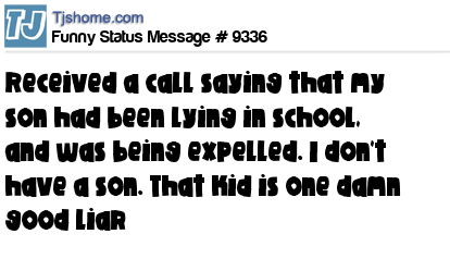 X received a call saying that my son had been lying in school, and was being expelled. I don't have a son. That kid is one damn good liar