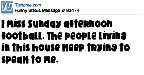 X I miss Sunday afternoon football. The people living in this house keep trying to speak to me.
