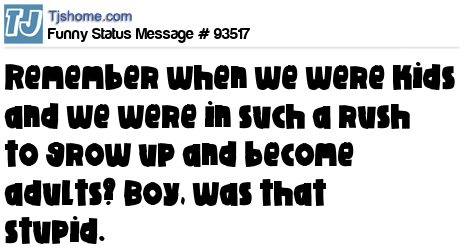 X says Remember when we were kids and we were in such a rush to grow up and become adults? Boy, was that stupid.