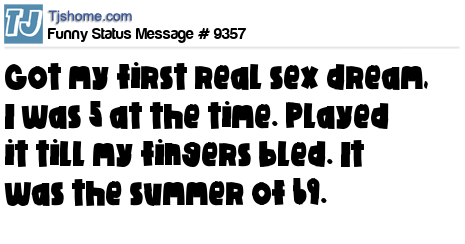 X Got my first real sex dream, I was 5 at the time. Played it till my fingers bled. It was the summer of 69.