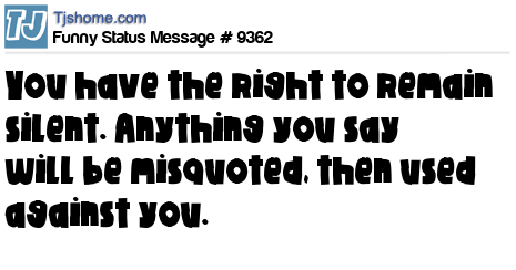 - # 36014 You have the right to remain silent. Anything you say will be misquoted and used against you.