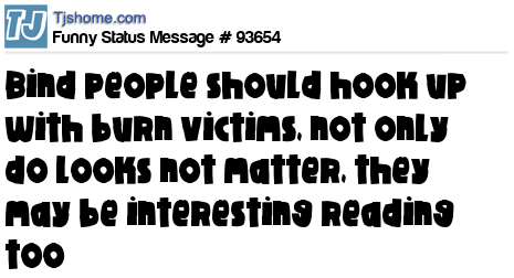 X is bind people should hook up with burn victims, not only do looks not matter, they may be interesting reading too