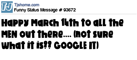 X Happy March 14th to all the MEN out there.... (not sure what it is?? GOOGLE IT)