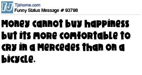 - # 67677 money cannot buy happiness, but it's more comfortable to cry in a Mercedes than on a bicycle.