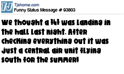 X says We thought a 747 was landing in the hall last night. After checking everything out it was just a central air unit flying south for the summer!