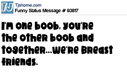 X says I'm one boob, you're the other boob and together...we're Breast friends.