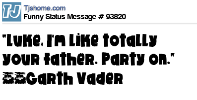 X "Luke, I'm like totally your father. Party on." ~~Garth Vader