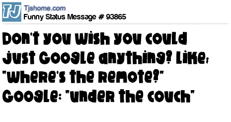 - # 82193 Don't you wish you could just google anything? Like "where's the remote?" google:"under the couch",
