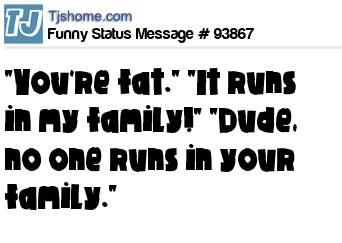 X  "You`re fat." "It runs in my family!" "Dude, no one runs in your family."