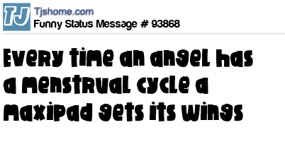X is Every time an angel has a menstrual cycle a maxipad gets its wings