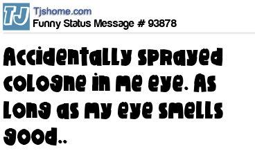 X is Accidentally sprayed cologne in me eye. As long as my eye smells good..