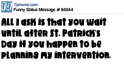 X says All I ask is that you wait until after St. Patrick's Day if you happen to be planning my intervention.