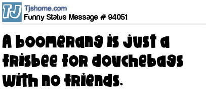 X says A boomerang is just a frisbee for douchebags with no friends.