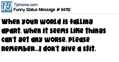 X is When your world is falling apart, when it seems like things can't get any worse, please remember...I don't give a s$it.