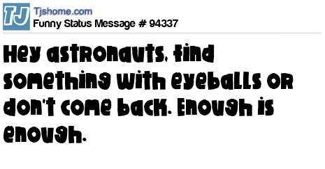 X Hey astronauts, find something with eyeballs or don't come back. Enough is enough.