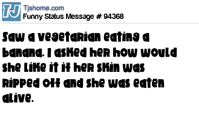 X saw a vegetarian eating a banana. I asked her how would she like it if her skin was ripped off and she was eaten alive.