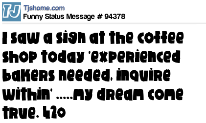 X I saw a sign at the coffee shop today 'experienced bakers needed, inquire within' .....my dream come true. 420
