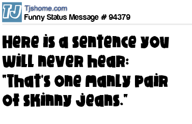 X says Here is a sentence you will never hear: "That's one manly pair of skinny jeans."