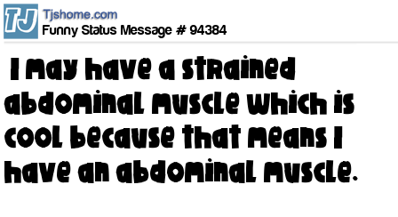 - # 114099 The doctor said I may have a strained abdominal muscle which is cool because that means I have an abdominal muscle