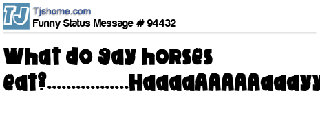 X is what do gay horses eat?.................HaaaaAAAAAaaayyyyyy