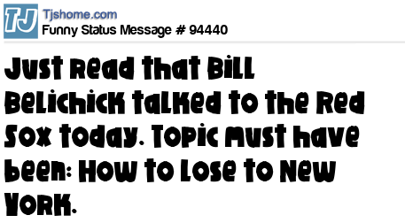 X is Just read that Bill Belichick talked to the Red Sox today. Topic must have been: How to lose to New York.