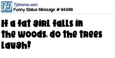 - # 27256 if a fat girl falls in the forest and nobody is there to see it ...... do the trees laugh?