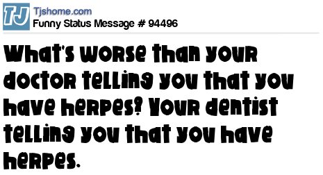X is What's worse than your doctor telling you that you have herpes? Your dentist telling you that you have herpes.
