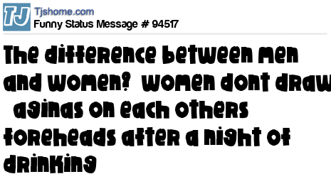 X is The difference between men and women? women dont draw √aginas on each others foreheads after a night of drinking