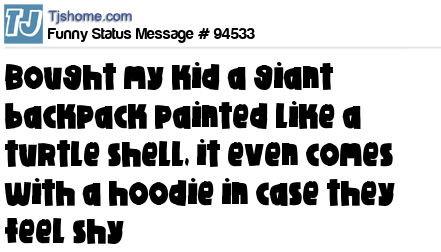 X is Bought my kid a giant backpack painted like a turtle shell, it even comes with a hoodie in case they feel shy
