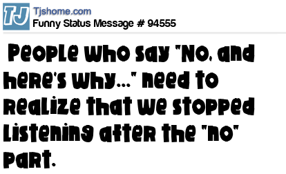 X says People who say "No, and here's why..." need to realize that we stopped listening after the "no" part.