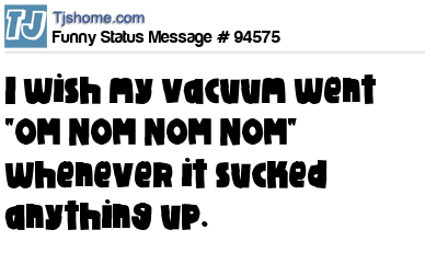 X says I wish my vacuum went "OM NOM NOM NOM" whenever it sucked anything up.