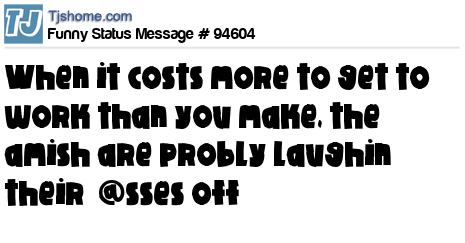 X is when it costs more to get to work than you make, the amish are probly laughin their @sses off