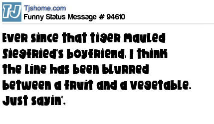 X is Ever since that tiger mauled Siegfried's boyfriend, I think the line has been blurred between a fruit and a vegetable. Just sayin'.