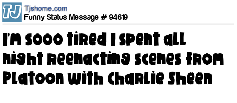 X I'm sooo tired I spent all night reenacting scenes from Platoon with Charlie Sheen