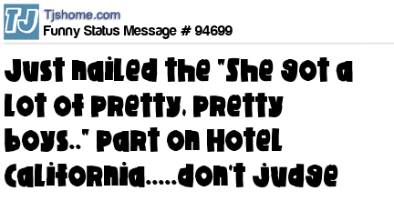 X Just nailed the "She got a lot of pretty, pretty boys.." part on Hotel California.....don't judge