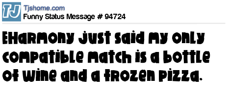 X eHarmony just said my only compatible match is a bottle of wine and a frozen pizza.