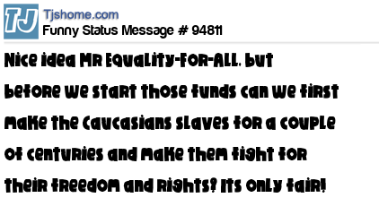 X says Nice idea Mr Equality-For-All, but before we start those funds can we first make the Caucasians slaves for a couple of centuries and make them fight for their freedom and rights? Its only fair!
