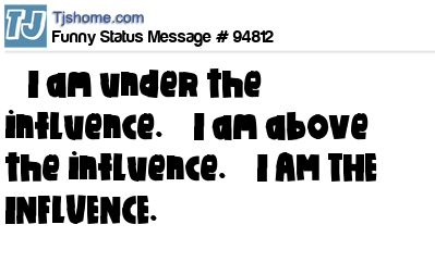 X ❒ I am under the influence. ❒ I am above the influence. ✔ I AM THE INFLUENCE.”