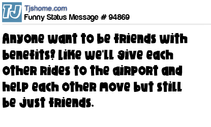 X Anyone want to be friends with benefits? Like we'll give each other rides to the airport and help each other move but still be just friends.