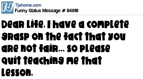 - # 96571 •Life is not fair, but life is not fair for everyone... which actually makes it fair.